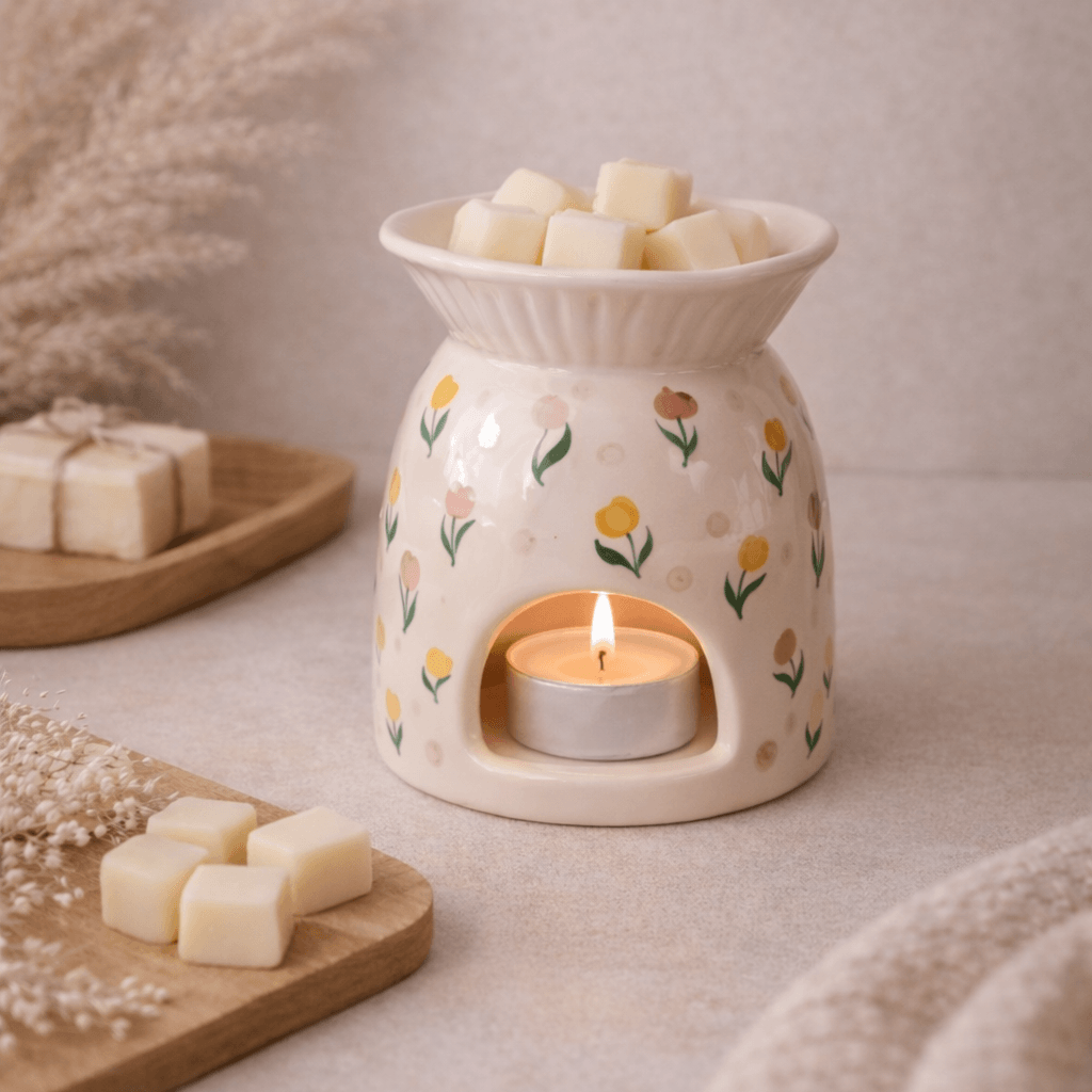 Ένας αρωματιστής που αποπνέει γλυκύτητα και κομψότητα. Το διακριτικό λουλουδάτο μοτίβο σε απαλούς τόνους δημιουργεί μια αίσθηση φρεσκάδας και ζεστασιάς, ιδανική για χώρους που αγαπούν το φως και την αρμονία.